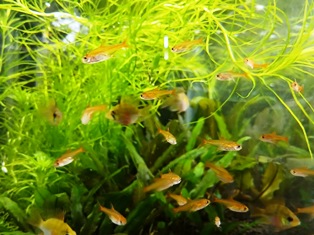 ブルーダイヤモンドラミレジィ、コリドラス パンダ、ミッキーマウスプラティ、ヤマトヌマエビ、ミナミヌマエビ、丹頂(服部氏)ほか