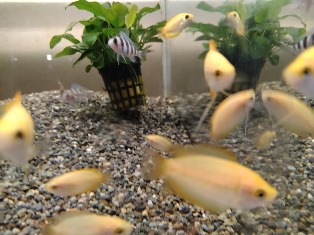 ミックスグッピー、イエローチェリーシュリンプ、オレンジチェリーシュリンプ、ネオンテトラ、フロントーサ、コンゴ-テトラ